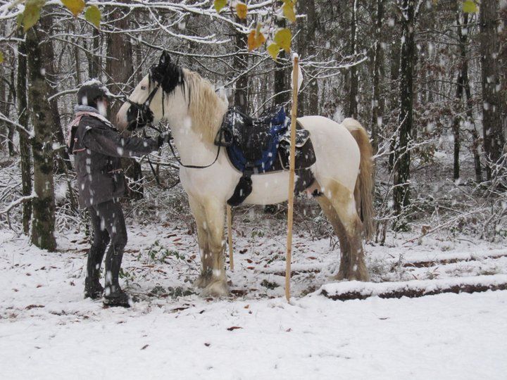 | Dire merci | Alors j'en veux personnellement à Dicadauroi qui a du trouver sa formule pour jeter un sort vers midi le dimanche ! En effet, nous sommes arrivés samedi en fin d'après midi par des routes sèches et le temps est resté sec jusqu'au dimanche midi même si vers 10 heures quelques flocons ont voltigé. C'est à partir de midi que tout s'est gâté : - Début du PTV sous la neige (10 cm au moins) - annulation des difficultés sautantes, - neutralisation des contrats de galop = 10 sur le trot pour toutes les difficultés à contrat d'allure, - Fin du PTV à 16 heures, tout le monde est transi mais sauf ! - 16 h 30, coupure d'électricité (j'apprends ce matin que c'est une panne de grande ampleur sur la région ...) - 17 h : on apprend que Pascal est dans le fossé avec son camion chargé de chevaux et poneys, sur le chemin d'accès au site bloquant toute entrée et sortie. - les cavaliers de Nicolas emmènent par les chemins leurs chevaux aux écuries à 2 km de là, on ne pourra pas aller les rechercher tout de suite (plus de chemin ...) - les bambous qui bordent le chemin et le site cassent les uns après les autres sous le poids de la neige, certaines branches d'arbre aussi ... - résultats annoncés autour du feu de cheminée, à la lampe frontale en présence réduite (les autres sont en train de surveiller les chevaux attachés sous la neige, d'essayer de sortir le camion du fossé ...) - 18 heures, je prends congé de Ken, ma fille part à pied sur le chemin avec le cheval en main et la frontale sur la tête, moi je pars dans la forêt avec 4x4 et van pour essayer de rejoindre la route par les chemins - 18 heures 18 : on s'est retrouvé juste avant la route, le cheval est rembarqué, et en avant pour une heure à 30 km/h dans la tempête de neige puis les routes se dégagent après Saint Aignan, la neige disparaît après Châtillon sur Indre, on arrive à la maison à 21:45 par des routes presque sèches. A part ça, ma fille était très contente du POR mais déçue de ne pas avoir pu jouer le PTV dans les conditions normales. Ken et Sophie ont assuré (surtout en misant sur la sécurité du PTV), le repas était bien, l'hébergement des chevaux de qualité et pas cher et je pense un bon niveau technique au moins sur le POR (pour le PTV, la neige a un peu faussé les cartes). Pour cette fin d'année, j'ai donc eu le feu de pailler et la tempête de neige ... |