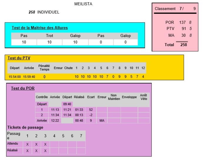 | Dire merci | En fait c'était les résultats du POR. Après résultats finaux je suis première 😆😆 je suis trop contente de la jument ! Par contre j'ai demandé au POR ou j avais perdu des points. A part le temps, j'ai oublié une balise 😕 mais sur la carte seul deux étaient notés Comment je devais trouver les autres alors ? |