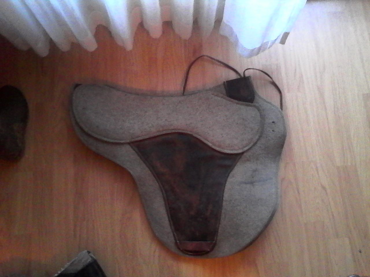 | Dire merci | L'intérieur est en feutre non doublé. Je l'ai utilisé avec un pare sueur en cuir c'est pourquoi il y a juste des poils en bas (que je brosserai si envoi...) En épaisseur, je ne l'ai pas sous la main, je pense 1cm + 5mm sous la selle, je vérifierai ce soir. Possible d'ajouter des cales, il y a une ouverture entre le tapis et la doublure sous la selle, j'y ai glissé une mousse moi à un moment. J'ajoute au TROC 2 pantalons Kerrits ! HYPER confort, sans bouton, des collants très agréables. Photos à venir. |
