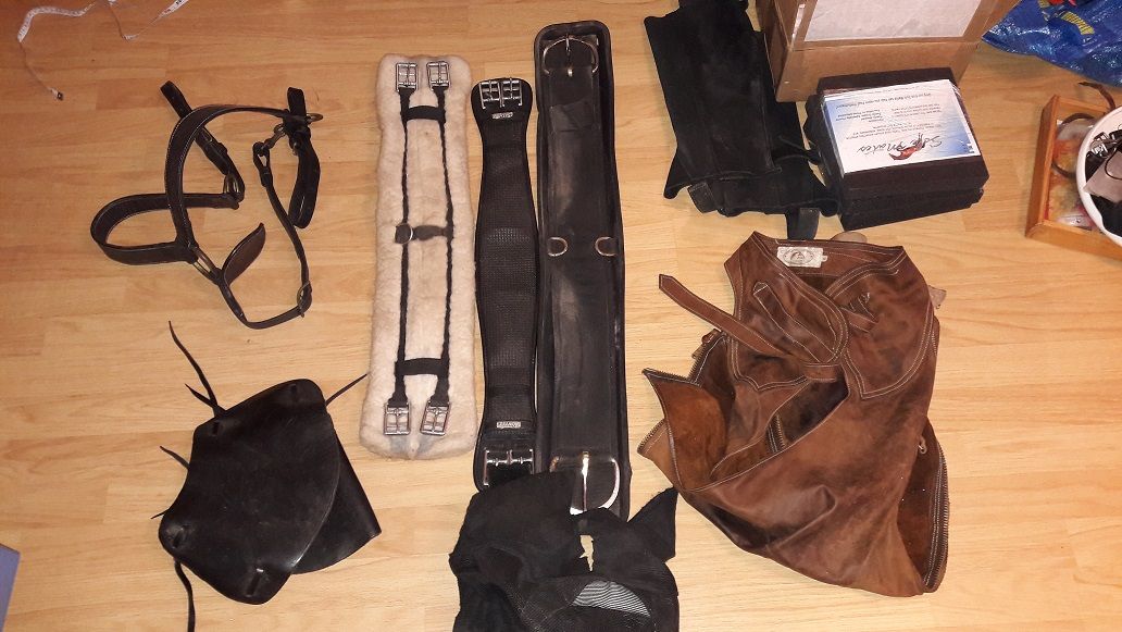 | Dire merci | Noires ou marrons pour les étrivières, mais bien souples. Le masque je vais regarder, j'en ai plusieurs, mais c'est taille grand poney ou cheval. Je te dis ça ce soir. |