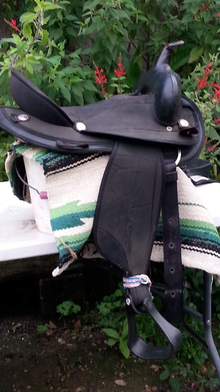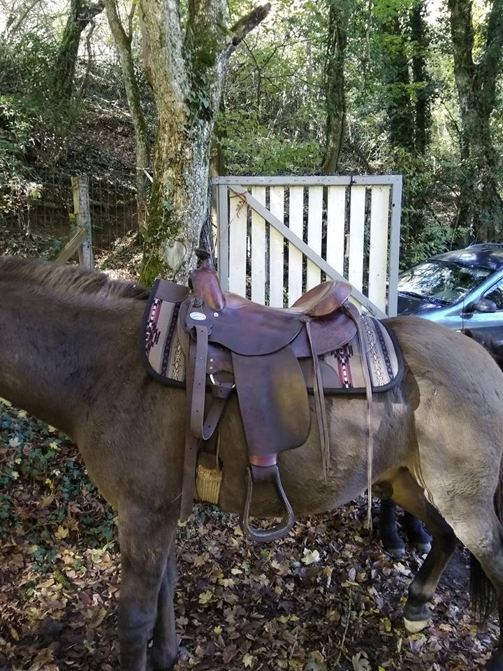 | Dire merci | J'ai une selle de rando, type western, en bon état général. Elle est bien trop grande pour mon cheval (un petit cheval plutôt fin 1,50 m) et elle convient plus à un cheval plus grand, et plus rond. Quelques infos: poids: 10Kg, taille siège: 40 cm, ce qui correspond à du 16 pouces western, et ouverture devant: 17 cm environ. C'est une selle très confortable en rando, pas faite je pense pour l'équitation western, et de gamme moyenne, très bien pour de la ballade, petite rando. Du coup, échange possible pour une selle de rando faite pour un cheval plus petit... ![]() ![]() Message édité le 20/03/19 à 21:24 Message édité le 23/03/19 à 16:40 Message édité le 23/03/19 à 16:40 |