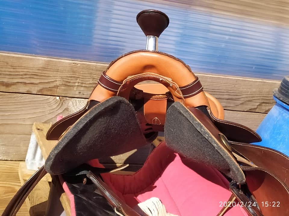 | Dire merci | tu peux detailler les infos de la selle western et de la selle rando a 250? c'ets quoi taille /ouverture/marque/artisan? merci |