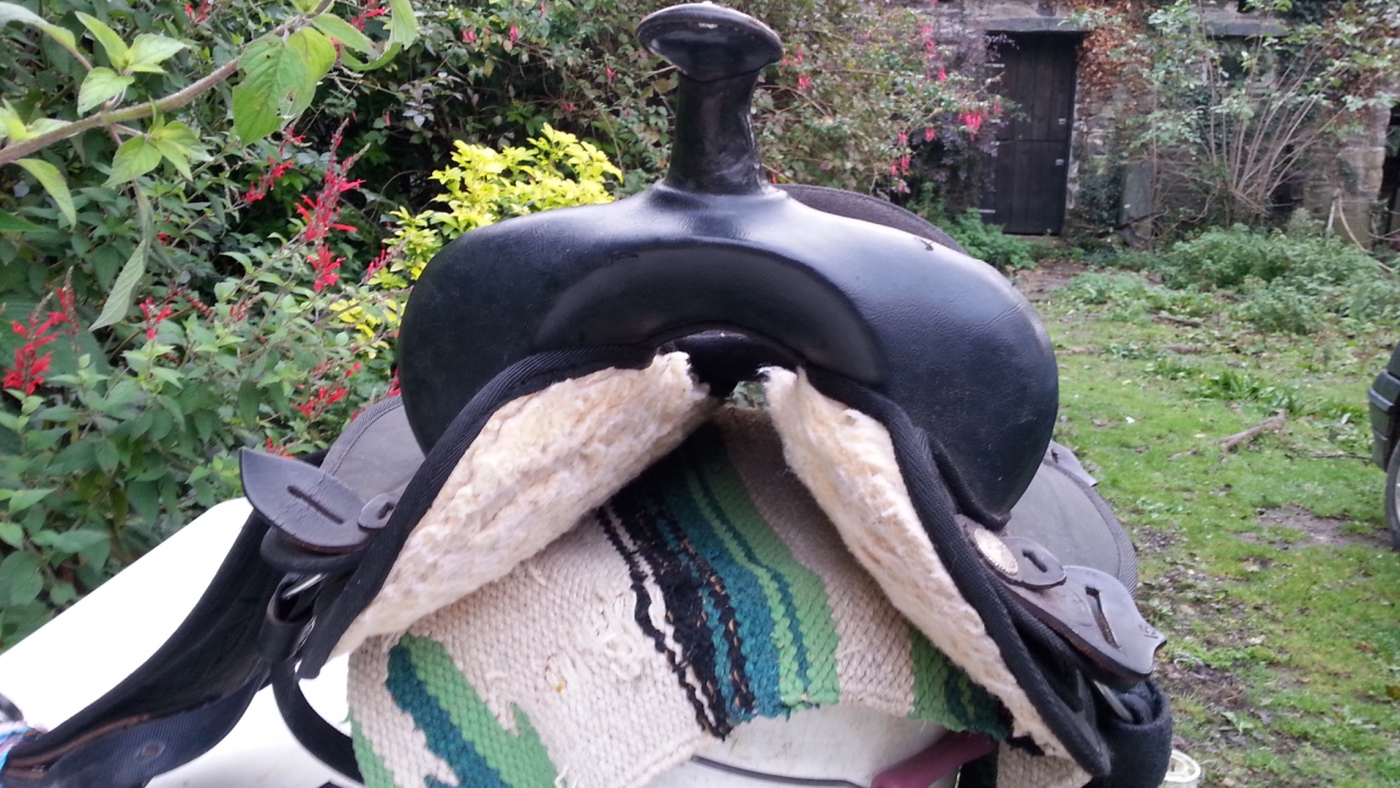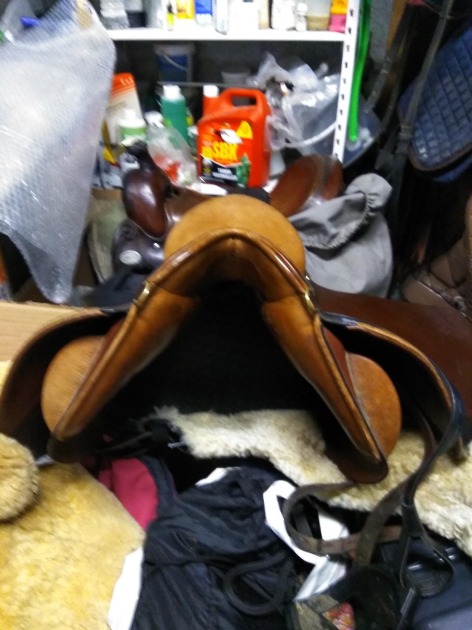 | Dire merci | Déjà 33cm de siege... 33.5 pour la petite western. D'ailleurs la mac à un arçon creux du coup y'à un morceaux qui se ballade dedans. bon, c'est une de plus à mettre en expo, va falloir que j'achète une grosse maison! |