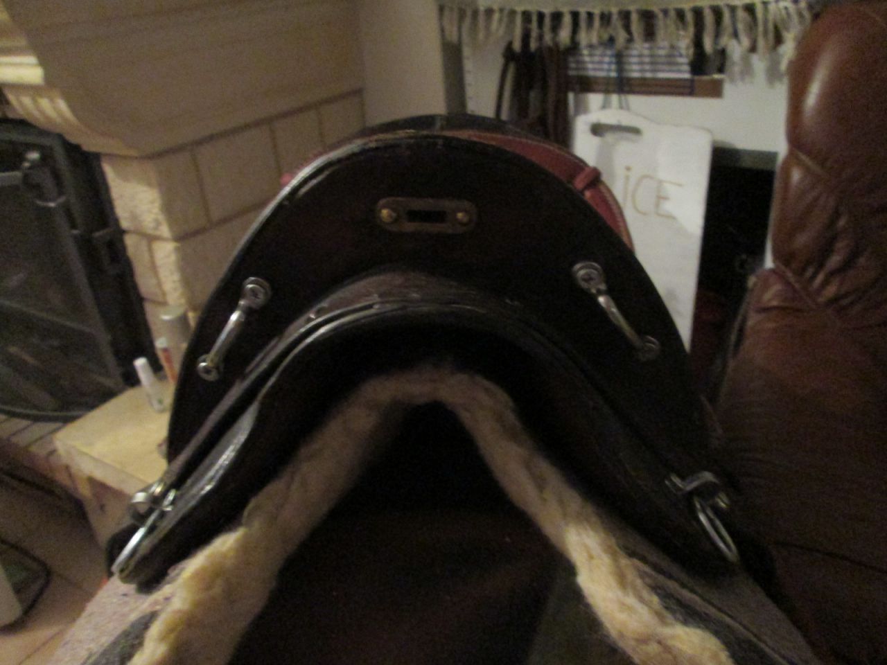 | Dire merci | Une veritable mc' clellan,ameliorée pour le confort du cavalier,ouverture large 30cm,17" ,complète,avec tapis et sanglage en corde ![]() ![]() ![]() ![]() réservée.... Message édité le 12/02/14 à 18:43 |
