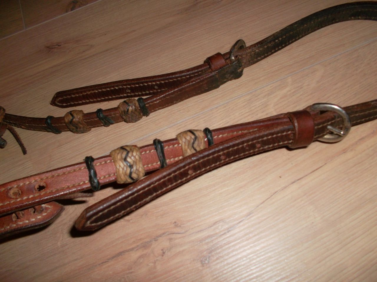 | Dire merci | filet cuir reinsman hackamore une oreille (j'ai enleve le frontal une oreille, mais je l'ai, je ferai une nouvelle photo avec)![]() ![]() adaptateur de sangle (fait par papyrus) pour sanglage bas : ![]() |
