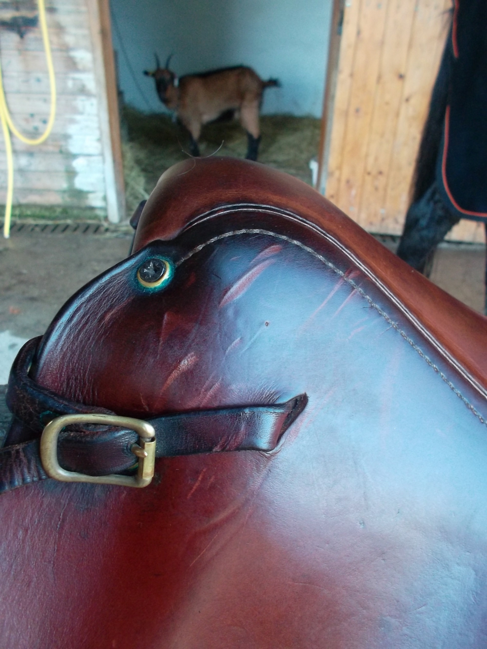 | Dire merci | selle rando JMS numerotée, arçon etroit, taille 1 siege mousse creux, sanglage trois point sanglage bas etrivieres sous quartiers matelassures epaisses mousse verifiée par saddle fitter, super cuir, coutures ok, des eraflures/griffures/frottements/taches dus a une utilisation normale en rando super confort cheval/ cavalier ![]() Message édité le 24/03/14 à 23:59 |