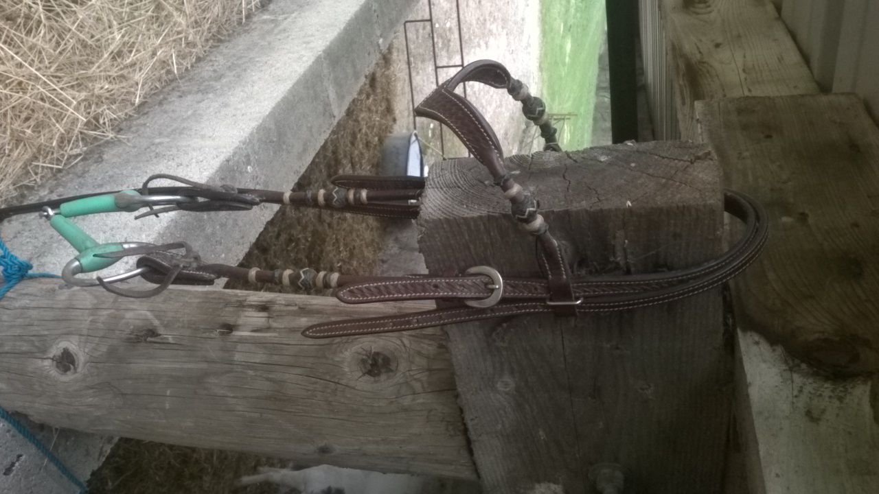 | Dire merci | Désolée j'ai eu un soucis d'internet. Le filet n°1, les rênes et la selle ne sont plus dispos. Je rajoute aussi un tapis type haf noir (photos cet aprèm). Je ne connais pas la valeur du side, il m'a été donné. Par contre, il va a des chevaux à petite tête (type arabe). |