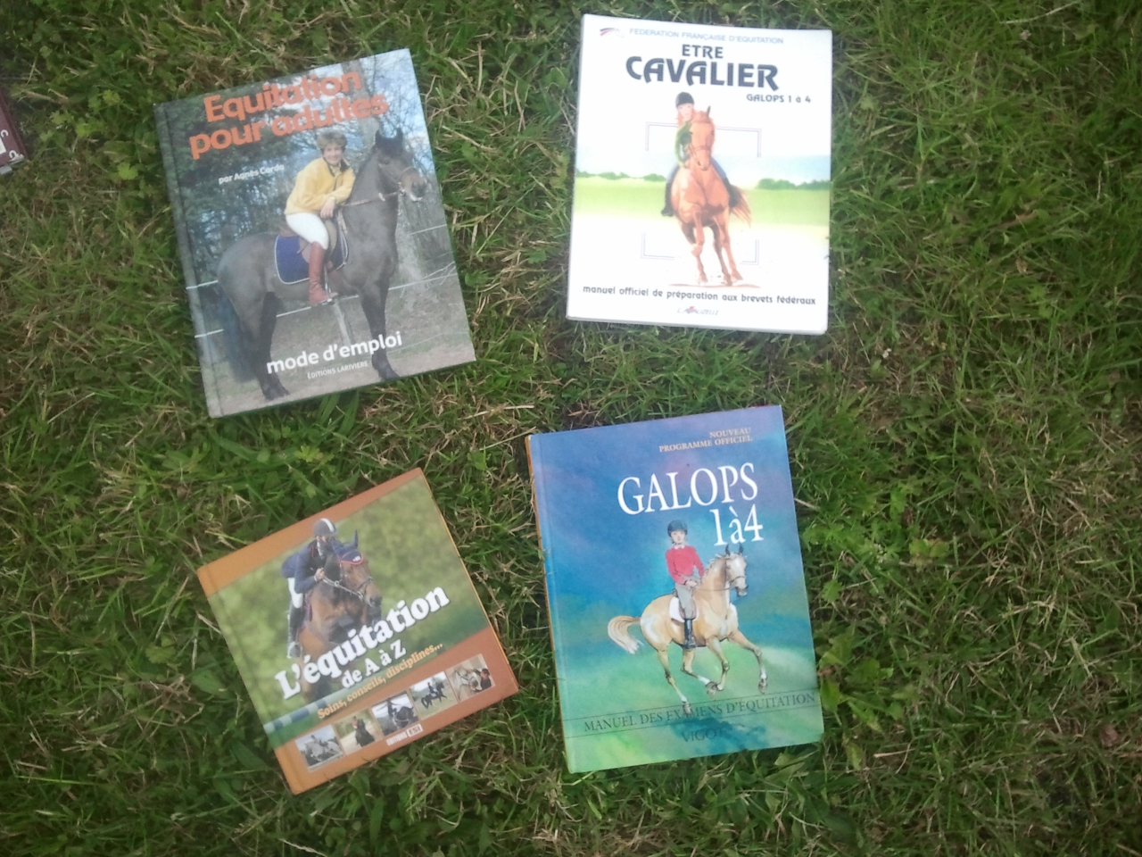 Déconnecté | Bonjour, Je troque : - Filet taille cheval brun (état moyen, pas abîmé mais pas entretenu) - Filet taille cob havane sans muserolle (état moyen, pas abîmé mais pas entretenu) - Rênes cheval brunes et oranges - Guêtres Norton taille poney, noire avec bordures roses à carreaux - 2 paires de bottes taille 36, élastiques à l'arrière - mors olive taille 125cm - sangle 105cm - sacoche de randonnée trois poches - amortisseur tout mouton blanc taille cheval - alliance de mors marron - licol taille poney decathlon rouge et gris à "moumoute" - licol taille poney kramer rose et marron à carreaux - De nombreux livres, tous en très bon état : "Equitation pour adultes" par Agnès Corda "Larousse junior du cheval et du poney" "L'équitation de A à Z" éditions ESI "Les chevaux" Tout un monde, Nathan "Mon cheval mon poney" atlas pratique "La randonnée à cheval" atlas pratique "L'imagerie du poney et du cheval" "Etre cavalier galops 1 à 4" édition Lavauzelle "Galops 1 à 4" édition Vigot Les photos suivent ! Je recherche : - Licol taille grand shetland/poney type B - Coques de sécurité pour étriers taille enfant - Filet taille cob ou petit cheval brun + rênes - mors à aiguilles en 105 Ou n'hésitez pas à proposer Message édité le 17/05/14 à 16:16 Message édité le 17/05/14 à 16:17 Message édité le 23/05/14 à 15:01 Message édité le 30/05/14 à 21:08 |