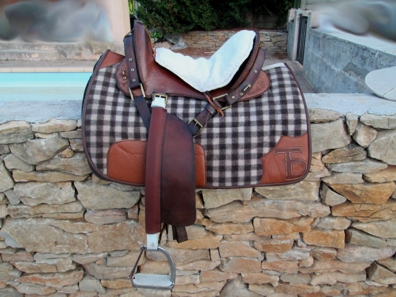 | Dire merci | Je up le post. Les selles sont essayables et idéales pour chevaux courts (entre 47 et 50cm de longueur). Elles sont légères contrairement aux westerns (meme poids qu'une classique). Position verticale, et top pour longues balades/randonnées (une peau de mouton et c'est parti). Je recherche également un jeu de protections type pro choice ou Norton vert pomme/fluo. |