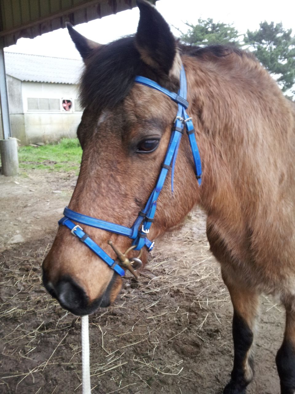 Dire merci | j'ai un bridon bleu et blanc avec les rênes ;-) |