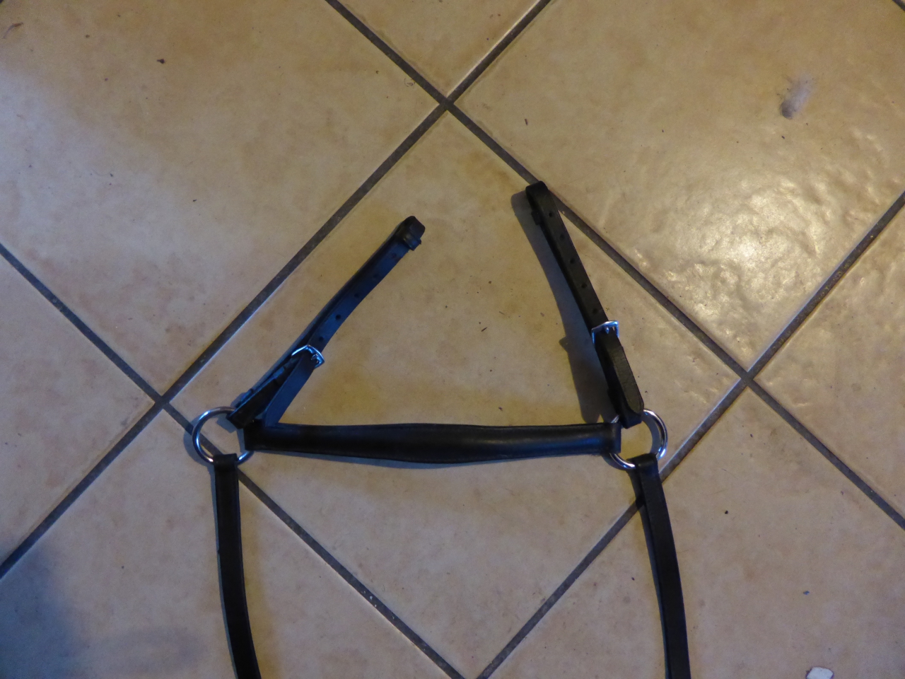 Dire merci | Side pull et licols éthologiques troqués ! J'ai rajouté un licol en cuir clincher taille cob en pas très bon état (récupéré comme ça en troc) et un licol en nylon marron taille cheval en bon état. |