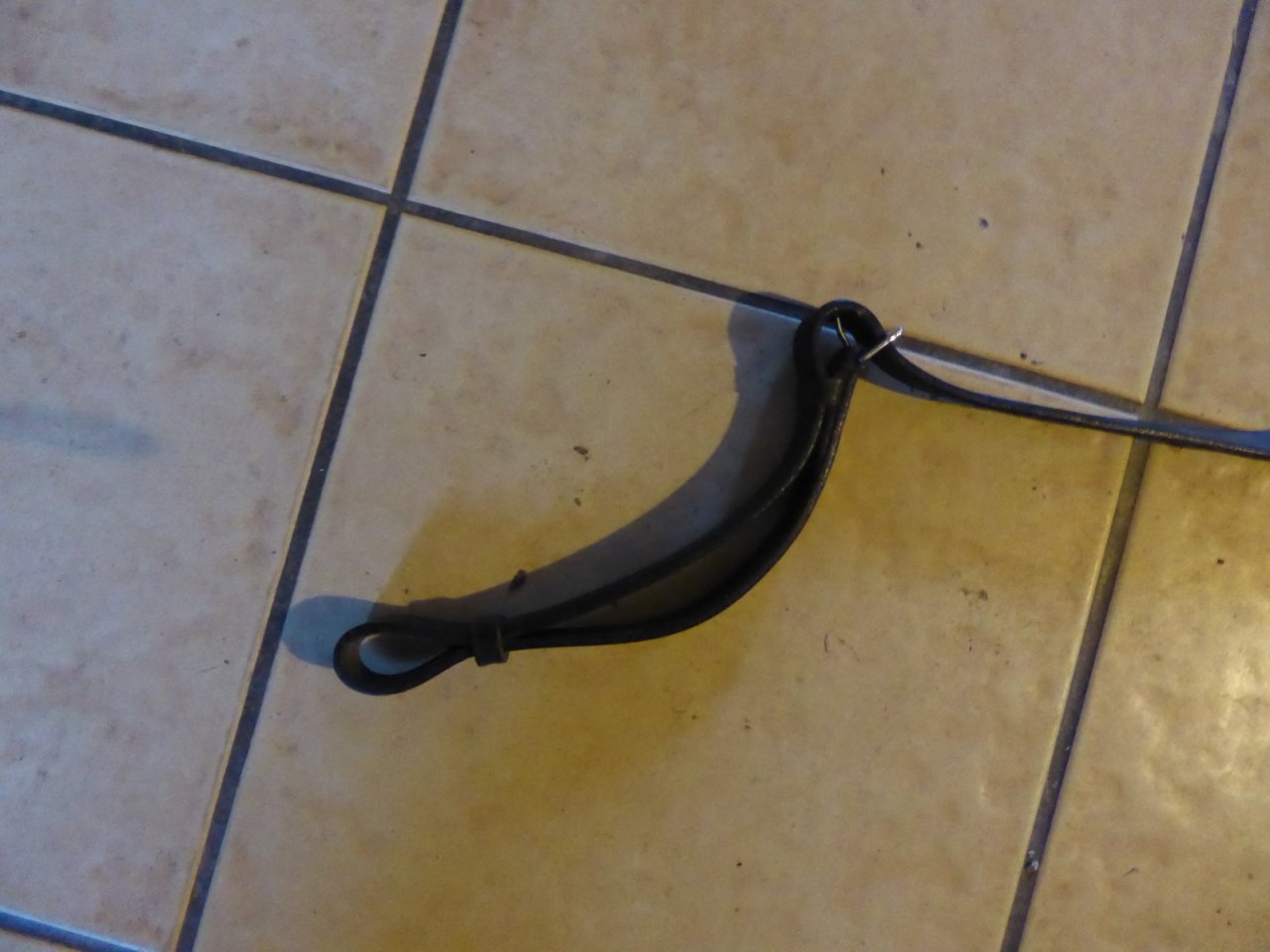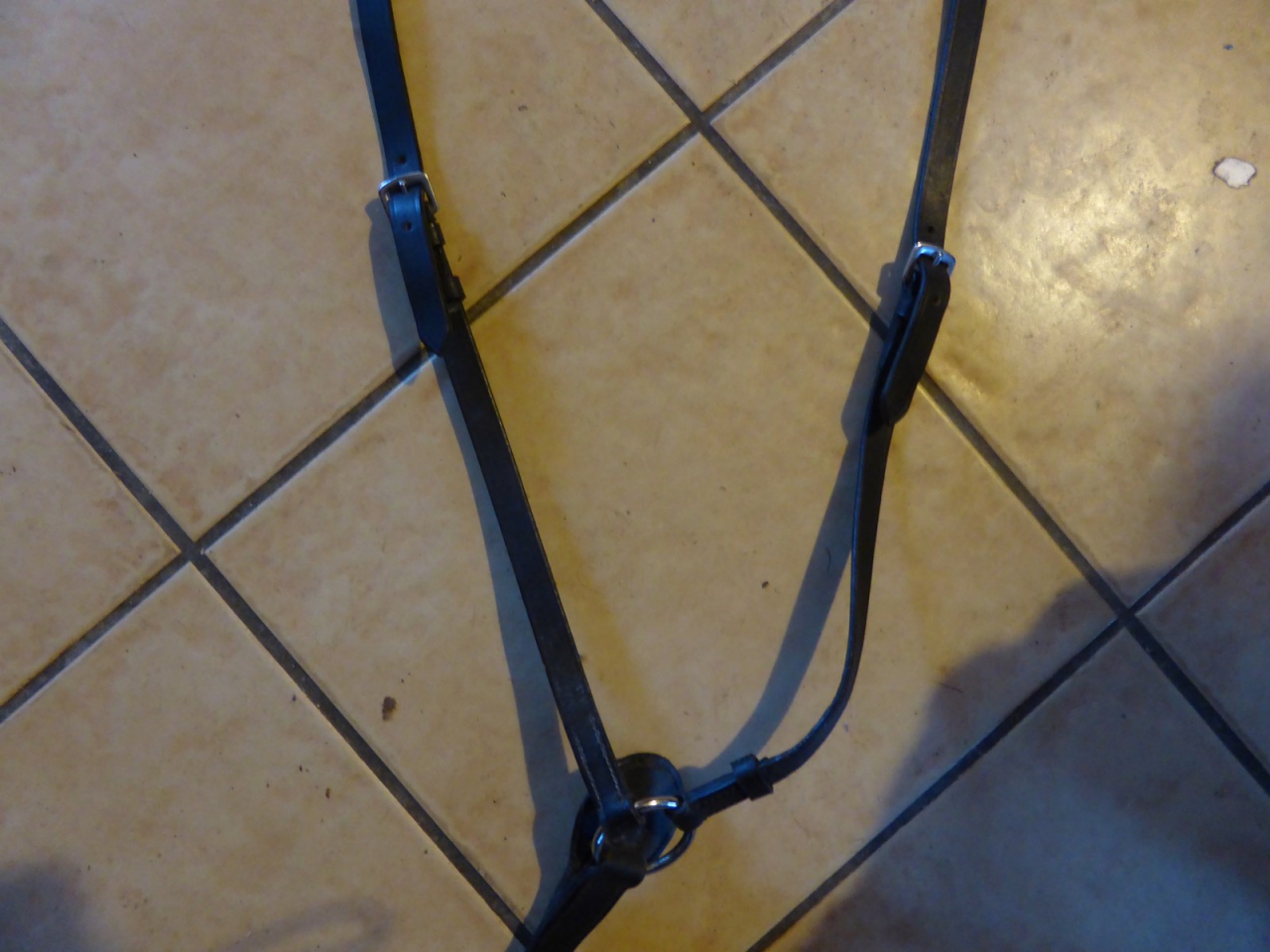 Dire merci | Un cheval de selle de gabarit normal , je pense.Je peux prendre les mesures des différents morceaux si tu veux. Sa valeur doit être de 25e.Je peux ajouter la partie qui fait martingale si tu veux.Elle vient d'un autre collier de chasse mais je ne m'en sers pas. |