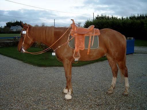 | Dire merci | Je ne sais pas trop ce que c'est, le seul truc écrit dessus c'est : "livestook supply hutchin texas" mais je crois que ca correspond au model de l'arcon. sinon j'en suis assez contente si ce n'est que c'est un peu lourd à soulever le matin en rando mais c'est comme toutes les selles western...J'ai changé deux trois trucs dessus comme rajouter des latigos et un sanglage trois points ![]() |