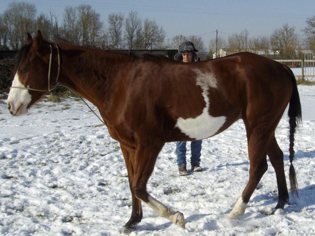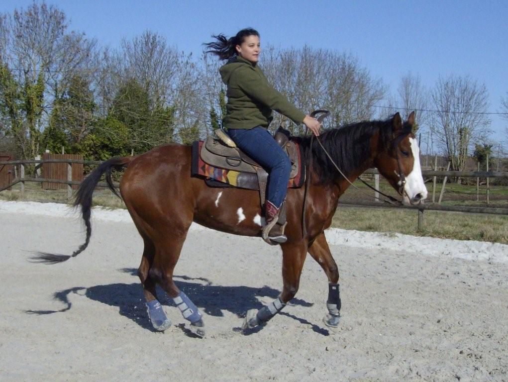 Déconnecté | Elle est dressée western ta juju ? Non Mais je lui apprend à s'arrêter sur le "wow" et à déplacer ses épaules avec une rêne "support" (pas sûre du terme ). Ya encore du boulot Mais j'aimerais la faire pouliner d'ici quelques années et garder le poulain et le faire dresser en western (pour du loisirs uniquement). |