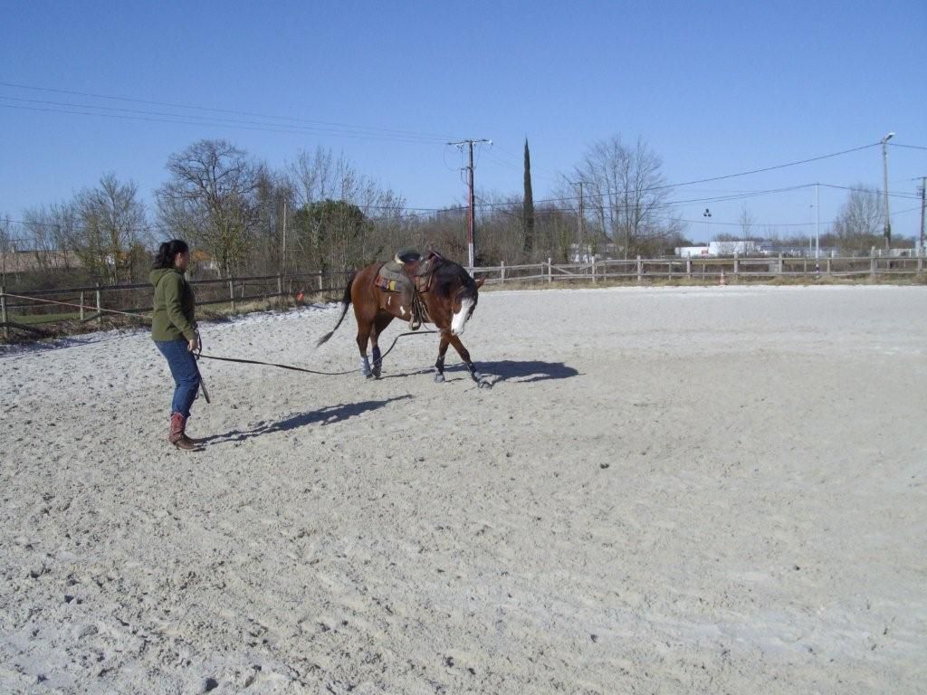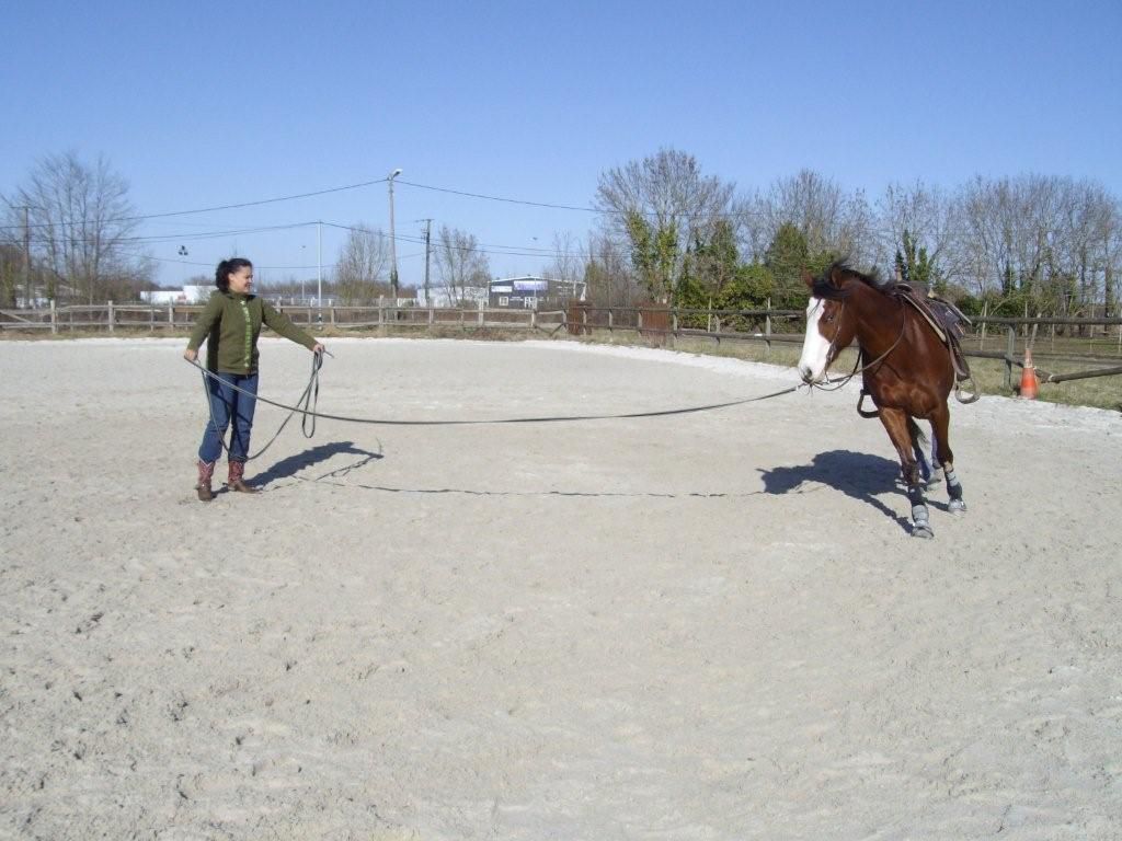 | Dire merci | Salut! Je viens pour le lasso^^, si tu veux voir la technique et que tu trouves personne pour te montrer, Adamo Walti l'explique dans son DVD! Faut regarder plusieurs fois pour comprendre^^. C'est mieux d'être avec quelqu'un mais bon, ça peut se faire comme ça. Normalement ça bouge pas trop, en tout cas pas trop vers l'oeil. Et si mes souvenir sont bons, pour changer de main, il suffit de le demander au cheval, la longe suit et ça passe! Pas besoin de tout défaire^^. Par contre, c'est dur quand même... ça vaut pas un licol plat^^. Surtout suivant la rigidité de ton lasso... Au fait pourquoi le longer comme ça? Il y a une raison particulière ou c'est plus pour le fun? Perso j'aime pas trop, il faut savoir le faire pour le niveau 4, mais bon... Le lasso c'est quand même pas ce qu'il y a de plus doux dans les mains et sur le tête sur cheval^^. |