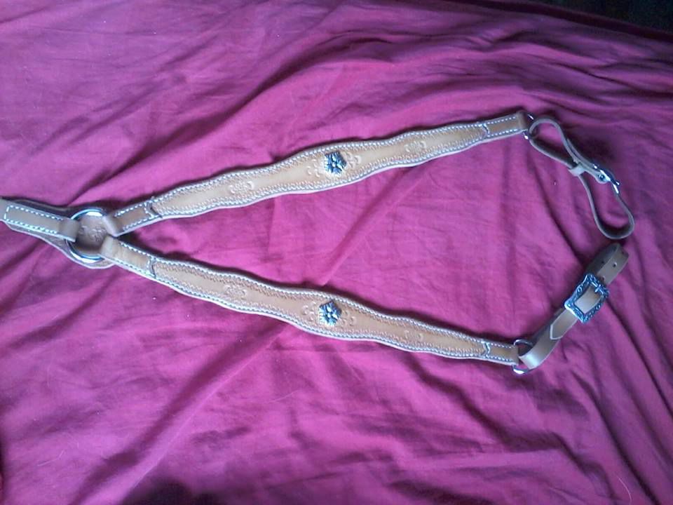 | Dire merci | Lool qui sait, on verra dans quelle discipline elle sera bonne (elle a 7 ans seulement, et est tout juste débourrée -puis a pouliné- mais classique donc je vais voir pour la mettre au travail chez un pro). Déjà j'aimerais faire du bétail (ranch sorting certainement) comme avec ma Zora. Bon du reining sans manège ça va être un peu "chaud" looooooool... Ah et les Continental, j'adore pour ma part!! J'en ai une pour Zora et celle qui est sur Sisi en est une aussi (j'ai acheté un tapis depuis hein...je sais, mon bidouillage est un peu étrange: le feutre fait glisser la selle donc j'avais mis la laine dessous), on ne change pas une équipe qui gagne... Depuis les photos j'ai enfin fini le collier de chasse assorti, et je veux modifier le bridon en photo que j'ai fait ce printemps, je réfléchis encore... ![]() |