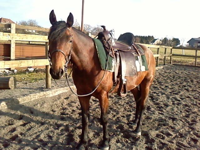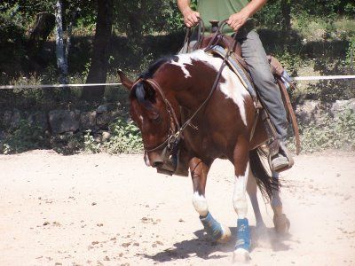 | Dire merci | Merci moi aussi je l'adore ! Après des débuts difficiles pour lui comme pour moi, maintenant la confiance s'est installée et je peux sortir en extérieur seule. Donc après deux années passées en classique avec lui, j'ai fait trois stages en western et je trouve que ça nous correspond mieux à moi comme à lui. Je ne suis pas experte comme vous tous, mais à partir de septembre, mon club propose des cours d'équitation western, donc les choses sérieuses commenceront car pour l'instant, je n'ai que le matériel, le cheval et les ballades !!! Mais surtout l'esprit et la philosophie me convienne parfaitement ! ![]() |