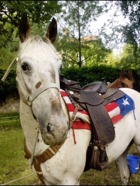 | Dire merci | Mon cheval ' Spots Bronco First ' Ma soeur avait deja mi des photo de lui elle etait assez vieille je remet une photo recente de lui mais juste le bridon qui ne fais pas western ^^' ![]() |
