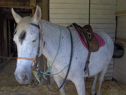 | Dire merci | bonjour ! j'ai fait mon licol en corde moi meme, c'est assez simple en fait ! la corde je l'ai acheté dans un magasin d'accastillage, de la 8 mm de diamètre je crois. (la longe et mes renes je les ai égalament achetées dans un mag d'accastilage, ils ont de la bonne corde). Pour la longueur je me souviens plus exactement, pour le mien : un poney avec une tete assez fine je crois que j'avais pris 3-4m mais je me souviens plus exactement. pour le modèle j'avais cherché sur internet et j'avais pris les mesures sur la tete de mon cheval. je te donne le site ou j'avais pris le modèle (par contre le noeud diamant au menton ne tenait pas il glissait alors j'ai cousu, mais c aussi à cause de ma corde) => http://shagan.free.fr/Equitation/Materiel/FaireLicol/licol.htm une photo pour te monter le résultat : ![]() bon courage ! |