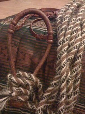 DéconnectéDire merci | Lone, aucun de mes bosals et aucune de mes mecates n'ont été achetés en sellerie non plus... Et tout d'accord pour les nuls et les très bons. Idem pour la connerie, qui est sans doute la chose la mieux répartie sur la planète en ce bas monde. Flooded, les Vaqueros n'avaient pas le sou non plus. Et surtout, à la belle époque, ils étaient loin de tout et les uns des autres. Donc il fallait être autonome au point de vue matos, et donc il importait qu'au moins un des gars de l'équipe sache tresser le rawhide pour faire les bosals et les reata (lasso en rawhide) et tresser le crin pour faire les mecates. |