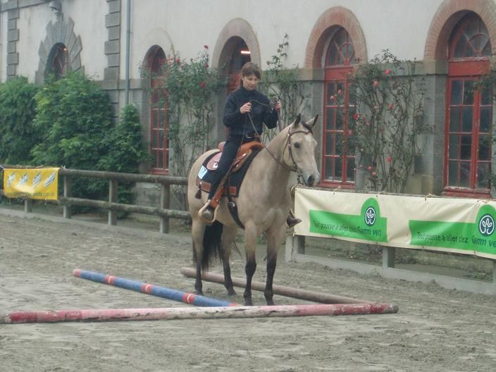 | Dire merci | Julot , tu peux voir le parcours de trail qui sera demander aux novices ici : Lien Je n'ai pas le parcours de showmanship mais ce sera quelque chose dans ce style : Lien . ce qu'il faut au minimum pour le cheval et le "cavalier" c'est savoir pivoter en fixant un postérieur (de préférence le postérieur intérieur) , reculer droit , savoir comment se placer lors de l'inspection par rapport au juge et lors des différentes maneuvres . Hésite pas à m'appeler comme je te l'ai proposé ![]() |
