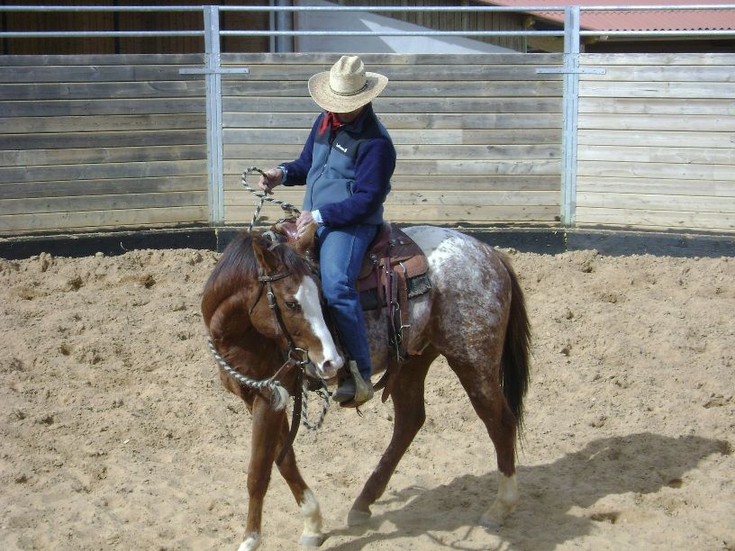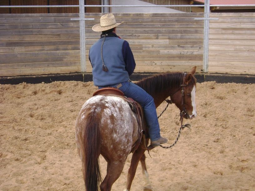 | Dire merci | Ca y est, notre poulain est parti chez les grands, nous l'avons mené dans un grand centre western afin que les "experts", enfin les "pros", finalisent son débourrage (commencé à la maison par nos soins) En effet, nous sommes de simples particuliers et même si on potasse beaucoup et que les échecs d'aujourd'hui sont les expériences pour demain, il n'était pas question de mettre en péril l'équilibre de notre jeune cheval et notre future sécurité. Donc, il y a une semaine, il débarquait au centre et hier - soit une semaine après son arrivée, cela donnait déjà cela : ![]() |