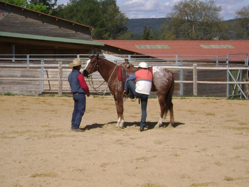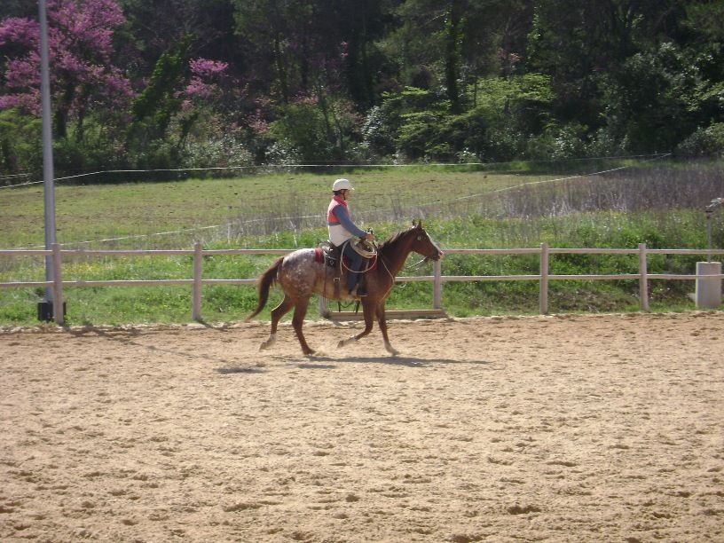 | Dire merci | Ca y est, notre poulain est parti chez les grands, nous l'avons mené dans un grand centre western afin que les "experts", enfin les "pros", finalisent son débourrage (commencé à la maison par nos soins) En effet, nous sommes de simples particuliers et même si on potasse beaucoup et que les échecs d'aujourd'hui sont les expériences pour demain, il n'était pas question de mettre en péril l'équilibre de notre jeune cheval et notre future sécurité. Donc, il y a une semaine, il débarquait au centre et hier - soit une semaine après son arrivée, cela donnait déjà cela : ![]() |