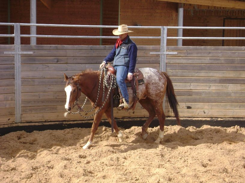 | Dire merci | Ca y est, notre poulain est parti chez les grands, nous l'avons mené dans un grand centre western afin que les "experts", enfin les "pros", finalisent son débourrage (commencé à la maison par nos soins) En effet, nous sommes de simples particuliers et même si on potasse beaucoup et que les échecs d'aujourd'hui sont les expériences pour demain, il n'était pas question de mettre en péril l'équilibre de notre jeune cheval et notre future sécurité. Donc, il y a une semaine, il débarquait au centre et hier - soit une semaine après son arrivée, cela donnait déjà cela : ![]() |