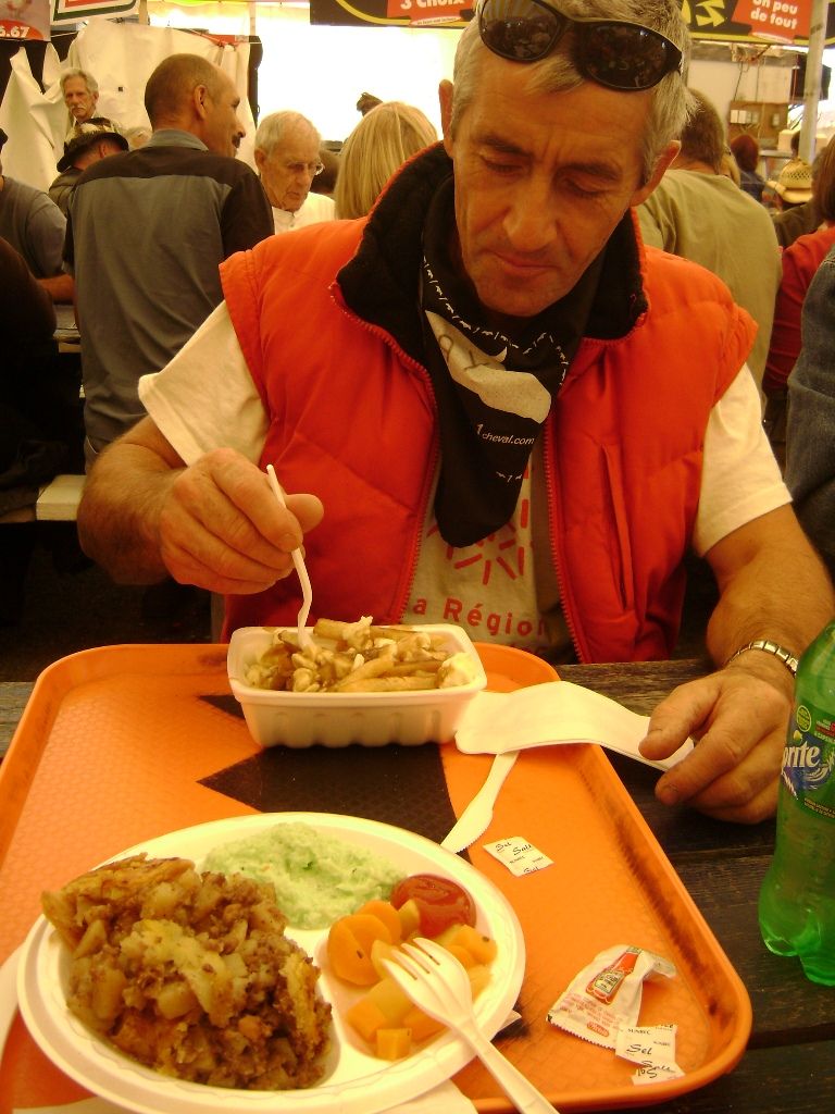 | Dire merci | Je viens d'acheter Equiwest : le journaliste que nous avons rencontré sur place (et avec qui nous avons gouté les spécialités locales...) a sorti un article sur le festival...C'est facile de le reconnaître, c'est le breton... De gauche à droite : Gina, notre hôtesse canadienne, le beau Lino (Corsica...), son frère jumeau Bud et Magali dite "Maurice"...Au premier plan : ce qui nous régalait... ![]() |
