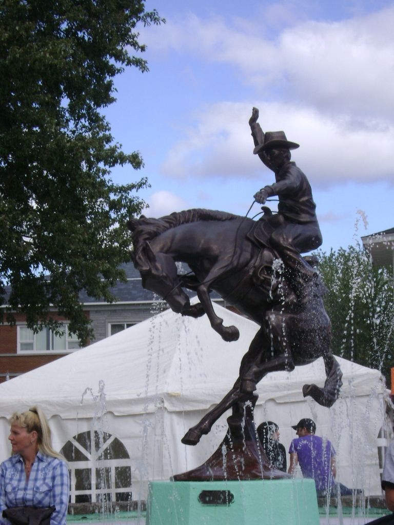 | Dire merci | Pas mal d'exposants dans les rues mais pas vraiment beaucoup d'articles western intéressants concernant le harnachement, par contre pour les chapeaux et surtout pour les fameuses bottes "BOULET", c'est bien ici qu'il faut s'adresser, les prix sont beaucoup plus attractifs qu'en France...Les jeans Wrangler sont également à l'honneur. Pour la manifestation, toute la petite ville de St Tite se transforme et se pare aux couleurs du rodéo... ![]() |