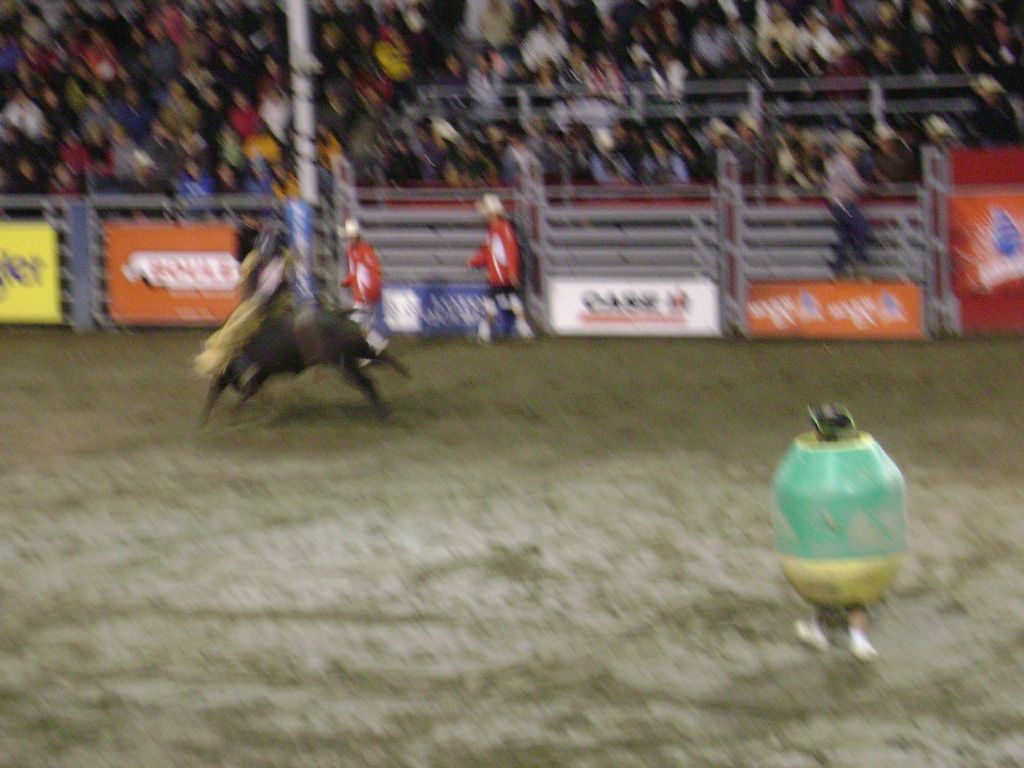 | Dire merci | Ou ça :![]() Je sais c'est très très flou mais on devine un peu le shaker...La bonbonne verte c'est un bonhommequi est dedans et qui se déplace avec pour servir d'écran entre le cow boy et le taureau au cas où il prendrait la mauvaise idée au taureau de charger le cow boy jetté à terre... |