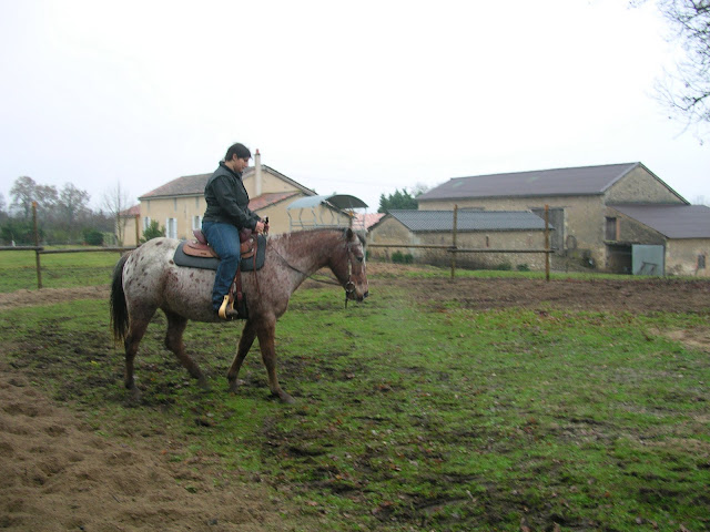 | Dire merci | aujourd'hui petite séance pour olwen en carrière avec les éperons ça allait beaucoup mieux mais pas d'entraînement donc très raide ! kéra a monté run un peu de pointer à la longe mais il avait un mauvais souvenir de la veille ensuite sous la selle il s'est petit à petit décontracté et à la fin s'était beaucoup mieux !run est trop sensible ! |