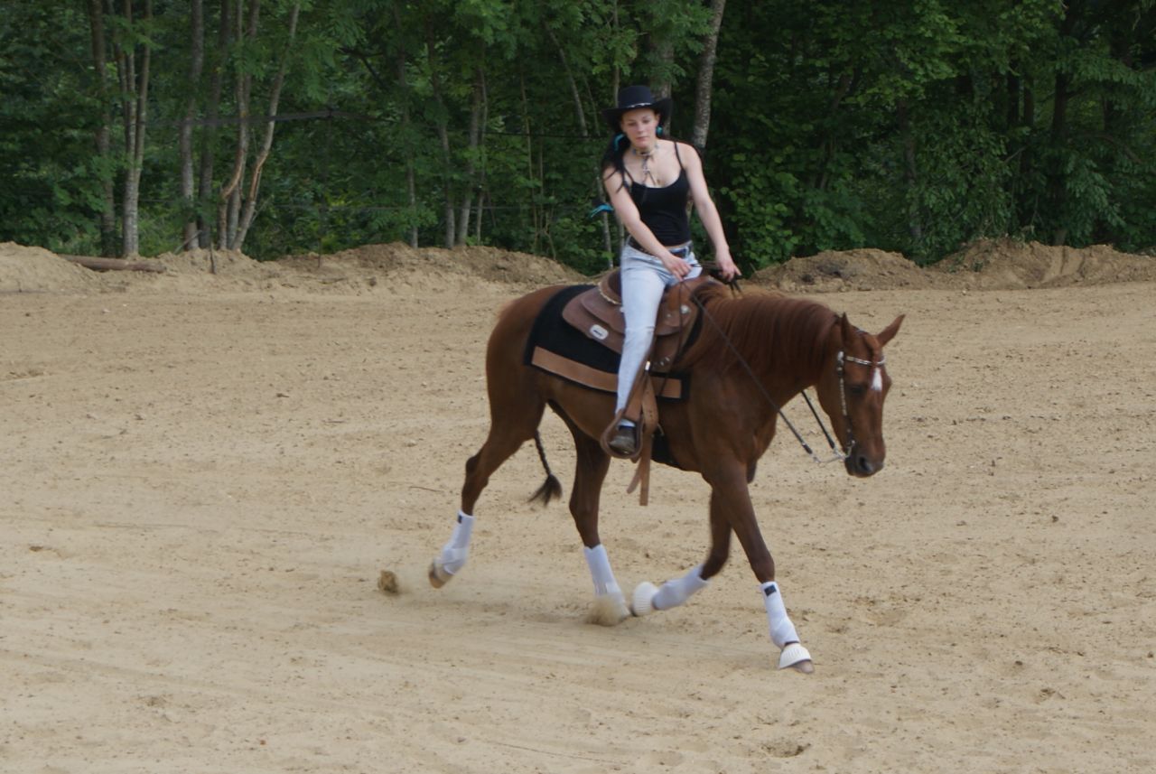 | Dire merci | merci beaucoup pour tes conseils.alor pour le mors je trouve ca debile de ma part dutiliser ca a 2mains alor que je sais qu'elle n'est pas encore prete a passer a 1main...et la gourmette jen é une mais elle ne se voit pas sur la photo elle es entièrement en cuir havane. je vais essayer d'utiliser plus mes jambes, ma jument es tres sensible des cotés des que j'effleur elle execute.encore merci pour tes conseil je v remettre quelques photos. je ne fait pas de competition mais c'est mon reve de pratiquer le western riding, et avec un vrai pro. |
