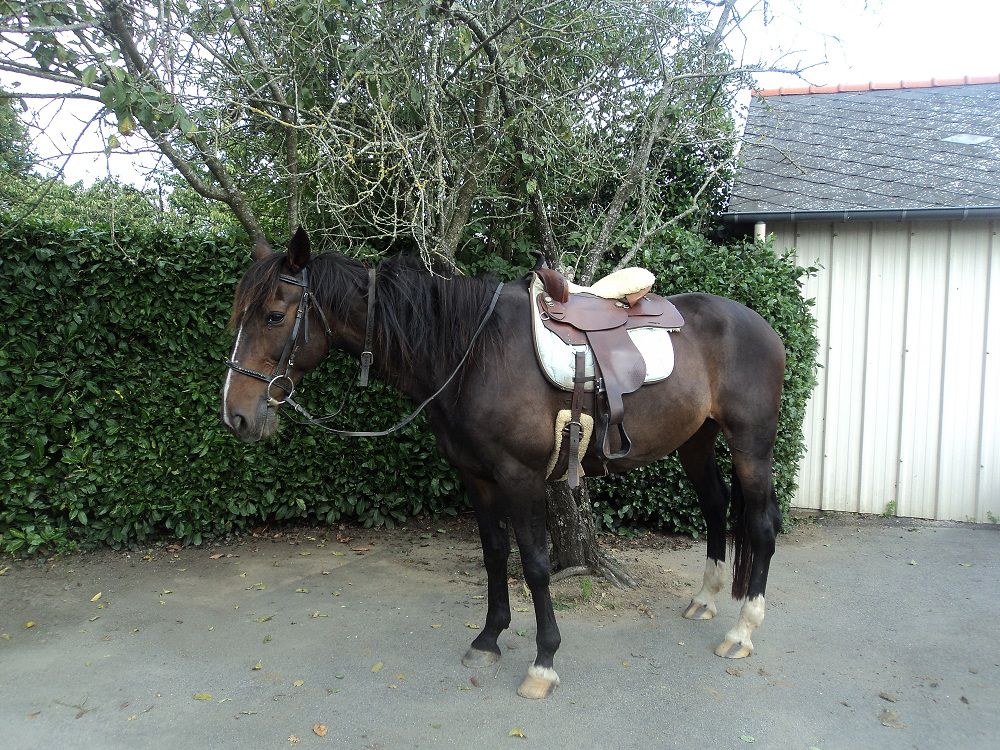 | Dire merci | Je viens d'acheter un cheval en septembre dernier et ce dernier était vendu avec une selle western "fouganza". C'est la première fois que je possède une selle de ce genre, je ne m'y connais donc pas beaucoup c'est pour cela que je vous pose la question. Je la trouve personnellement juste au niveau des épaules même si elle se cale juste derrière le garrot et un peu longue derrière. Qu'en pensez vous? je n'ai que sa en photo je m'en excuse d'avance j'essayerai d'en prendre d'autres. ![]() |