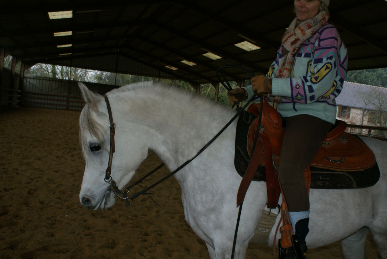 | Dire merci | Tous les avis sont bons à prendre ! mimi : c'est une selle de barrel, 15', je ne vois pas comment on va pouvoir faire plus petit ! A quoi trouves-tu qu'elle est grande ? elle n'est pas sur les reins ...Mhu : non non, toujours pas trouvé !! J'essaye une EquiD arabian ce w-e, croisons les doigts ! Et sinon, je sais que ça n'est pas un sellier western, mais c'est le seul qui me propose cela, Pheonix m'envoie un arçon "nu" ralide, qui selon lui devrait aller, pour que je teste sur la jument et qu'en fonction il habille la selle avec les épaisseurs qu'il faut. Edenemi : oui, j'ai un peu eu l'impression qu'une jeunette ne valait pas bien la peine qu'on lui explique .... |