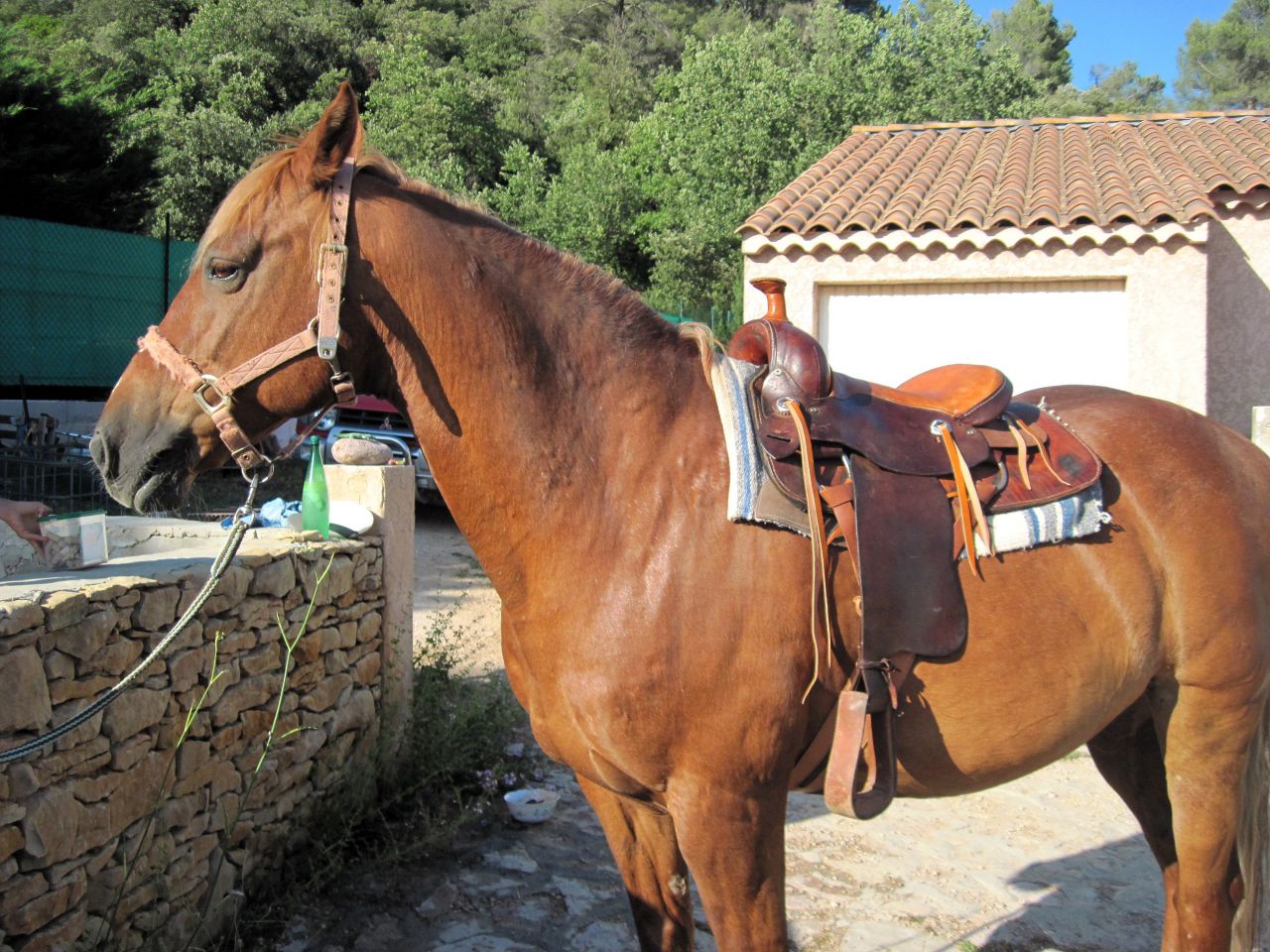 | Dire merci | Bonjour aux spécialistes du western! J'ai un (petit) problème...Je viens de remettre en état une selle western,mais je ne connais pas son "modèle" a quelle discipline elle est censée servir... En fait je n'y connais rien! Mais je voudrais me la garder car même si elle ne paie pas de mine,elle est de très bonne qualité coté cuir...et puis...je ne verserai pas de larmes si elles se griffe dans les ronces ou se prends la pluie En arrivant avant réstauration: ![]() Maintenant: ![]() Sur mon gros: ![]() Merci de votre aide précieuse |