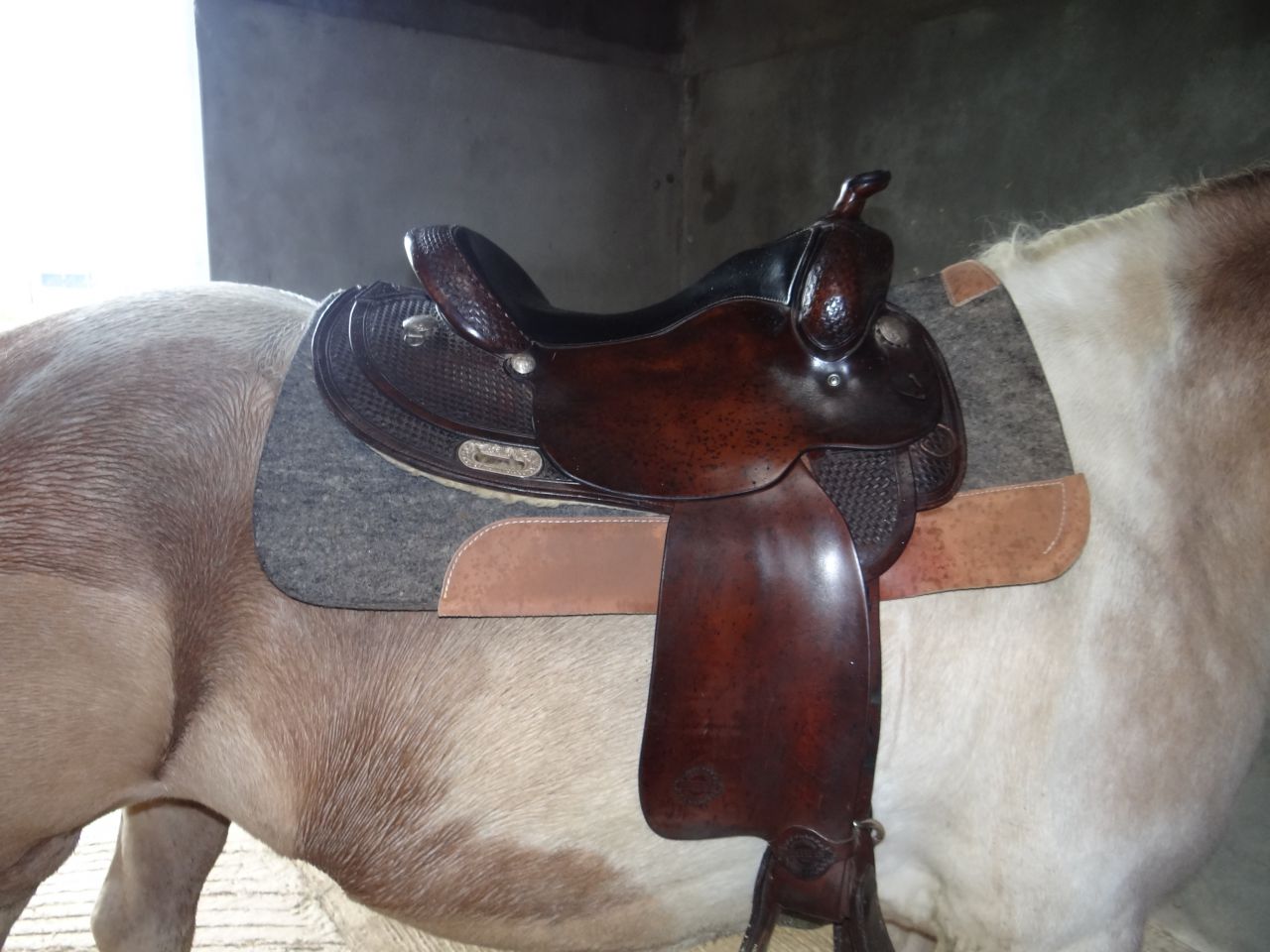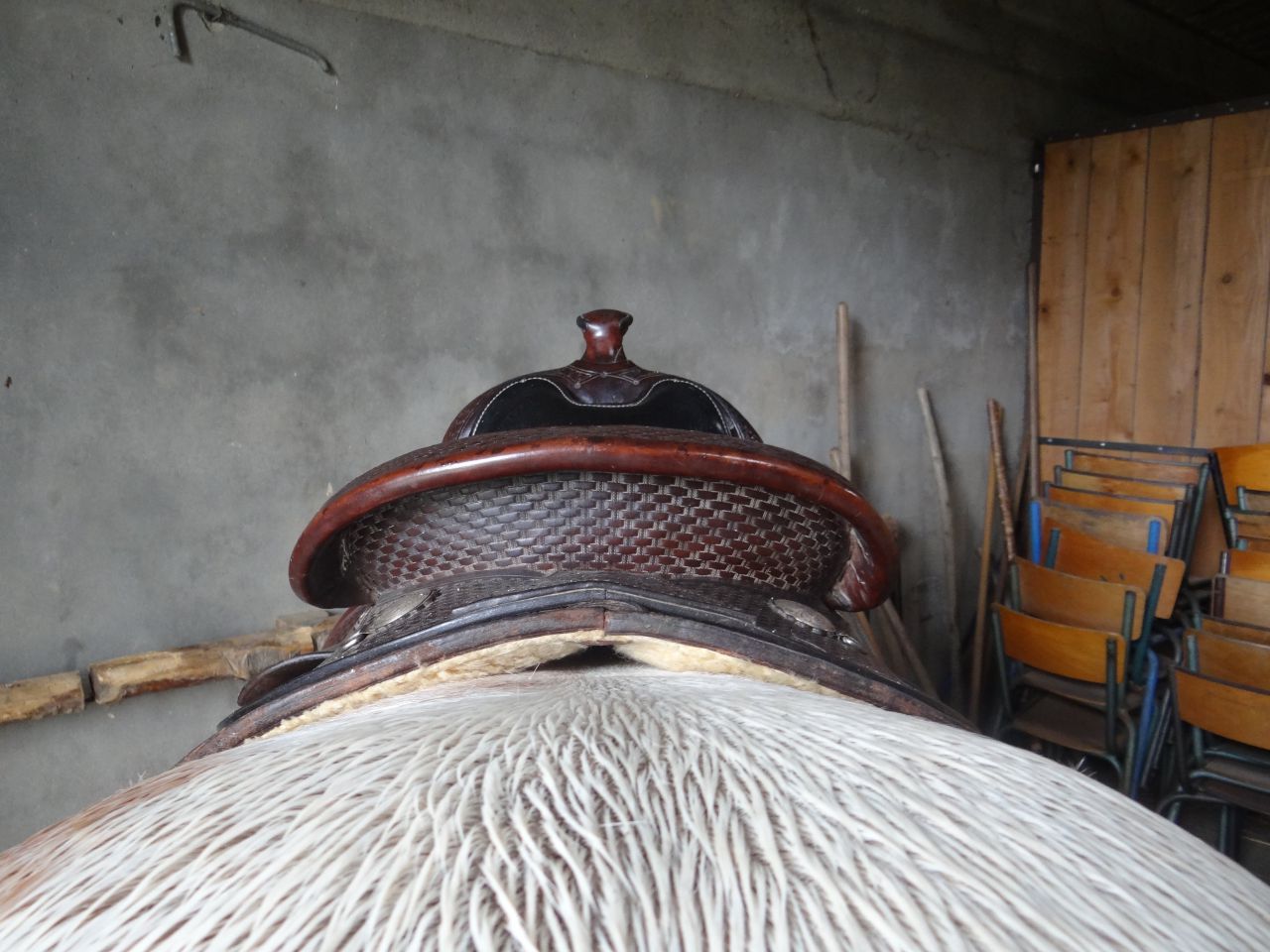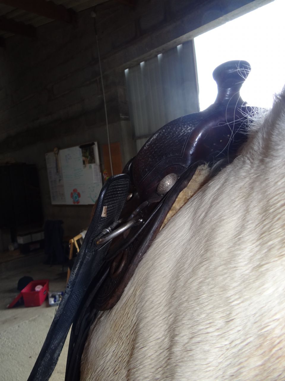 | Dire merci | Bonjour, Voilà, c'est la 4ème selle que j'achète en 2ans, et j'espère bien que cette fois c'est la bonne... Je l'ai essayée hier pendant un cours d'1heure, et c'est la première fois que ma jument ne réagit pas à grand renfort de coups de tête quand je desselle depuis longtemps, donc je pense que c'est positif! Par contre quand je passe ma main en-dessous j'ai l'impression qu'il y a plus de pression au niveau des épaules que sur le reste du dos, et j'ai eu le problème avec les 4... Je mets quelques photos, prises un peu vite fait à l'abri du déluge, mais je pense qu'il faudra que j'en fasse d'autres! Notamment sanglé, parce que j'avais déjà désanglé avant de penser aux photos Avec le tapis mais pas sanglé: ![]() ![]() ![]() Sans tapis: ![]() ![]() ![]() (pour la différence entre les 2côtés, le cuir de la selle est un peu "déformé" ![]() ![]() ![]() Des avis?? |