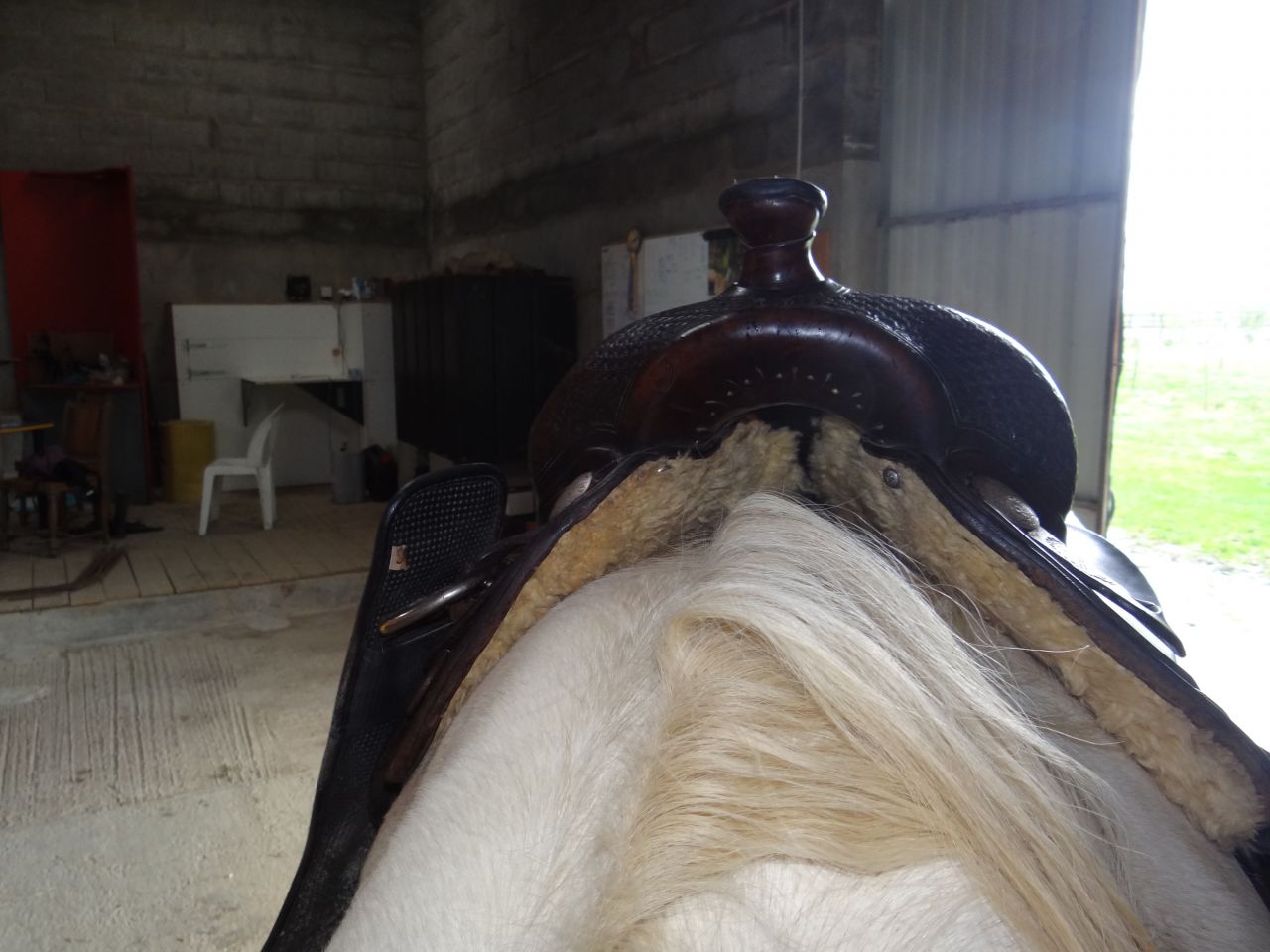 | Dire merci | J'ai l'impression, (mais je suis plus calée en selle anglaise!) que la selle descend un peu vers l'avant, l'ouverture d'arçon ne serait t'elle pas un petit peu trop large? |