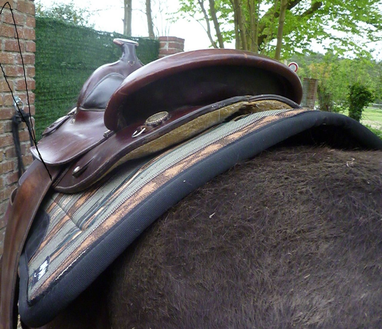 | Dire merci | les copains westerners ont souvent une selle, très ouverte, puis selon le cheval dessous mettent 1-2 voirs 3 tapis épais pour "adapter" si elle est trop large pour le biquet ![]() |