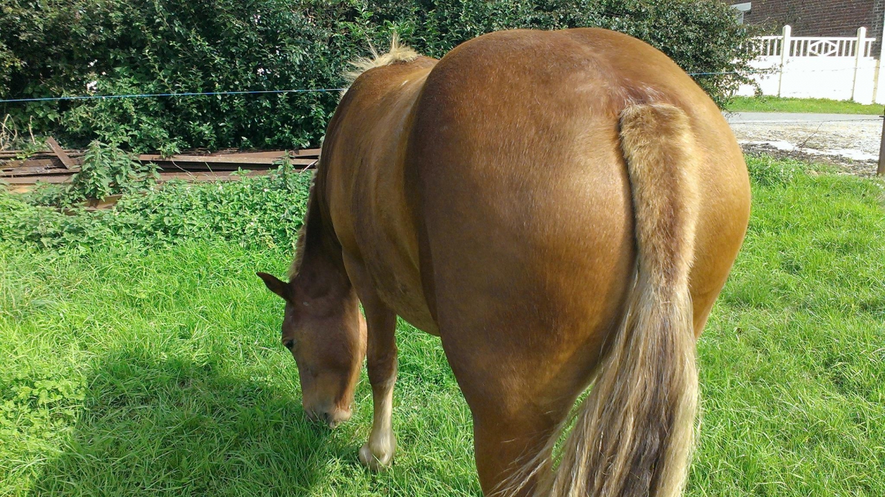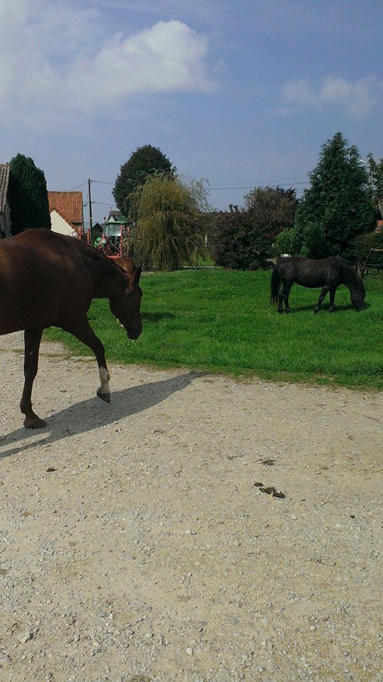 Déconnecté | Il y a quelques temps nous envisagions de faire saillir notre TF Lamoura du Hemus par un PH PP Sacreed assets , cependant vu son caractère de m**** ( à la jument ) nous nous ravisons et allons la laisser tranquille pour que mon mari en profite comme il veut (elle a 15 ans ) depuis , si certains ont suivis nous avons donc : Daisy mon oi de 22 ans , ma moitié bref la jument de ma vie Lamoura du hemus TF PP 15ans grande saucisse de son surnom ![]() et la dernière arrivée : Daisy (oui encore ) de cresecques , renommée Dusty (pas sur les papiers mais pour pas avoir deux daisy ) mérens OC car elle est sortie alezan par andalouzia et sultan de castelmir Dusty a donc un an , je l'ai eue en Janvier toute fraîchement sevrée . ce n'était absolument pas prévu d'acheter un cheval supplémentaire et encore moins un poulain mais à force de traîner sur leboncoin je me suis fait avoir ![]() donc elle est arrivée ici brute de pomme, pas manipulée , bref on ne pouvait même pas la toucher sans qu'elle aille se jeter dans les murs de son boxe autrement dit j'en ai un peu ch*** niveau manipulation mais l'essentiel est là et elle apprend très vite sa mère toise 1.47 et son père 1.52 elle sera parfaite pour le travail de bétail , pas trop grande pas trop petite bref ça devrait le faire. Pour ce qui est des vidéos vous pourrez les trouver ici j'essayerai de les mettre en allant 2 jours après son acquisition : première sortie au paddock avec zyzy |