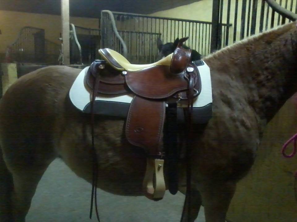 | Dire merci | oui la jument semble bien se comporter et traces ok...je la récupère demain pour la huiler à la maison et je repose une pièce de cuir sur les étriers |