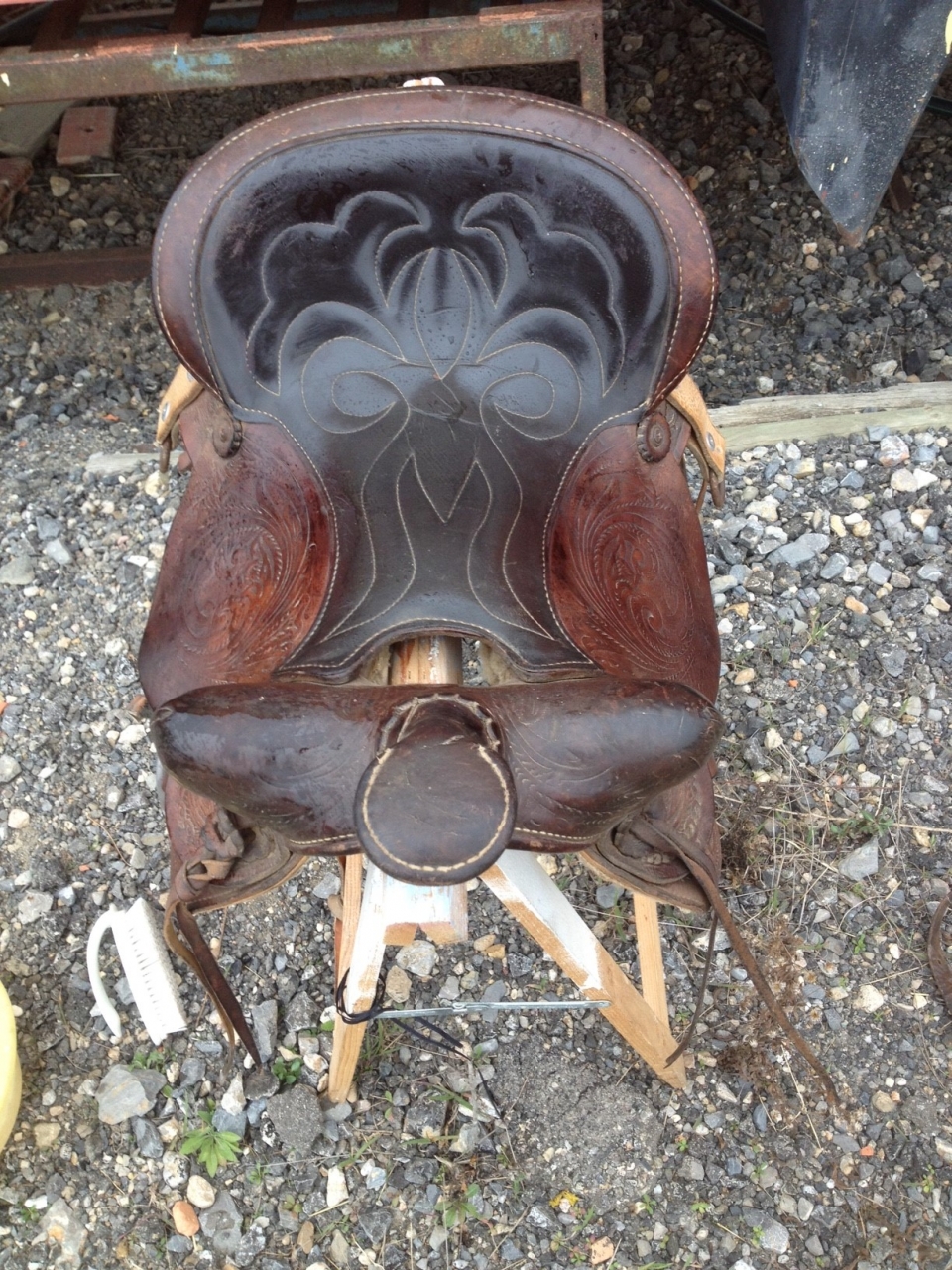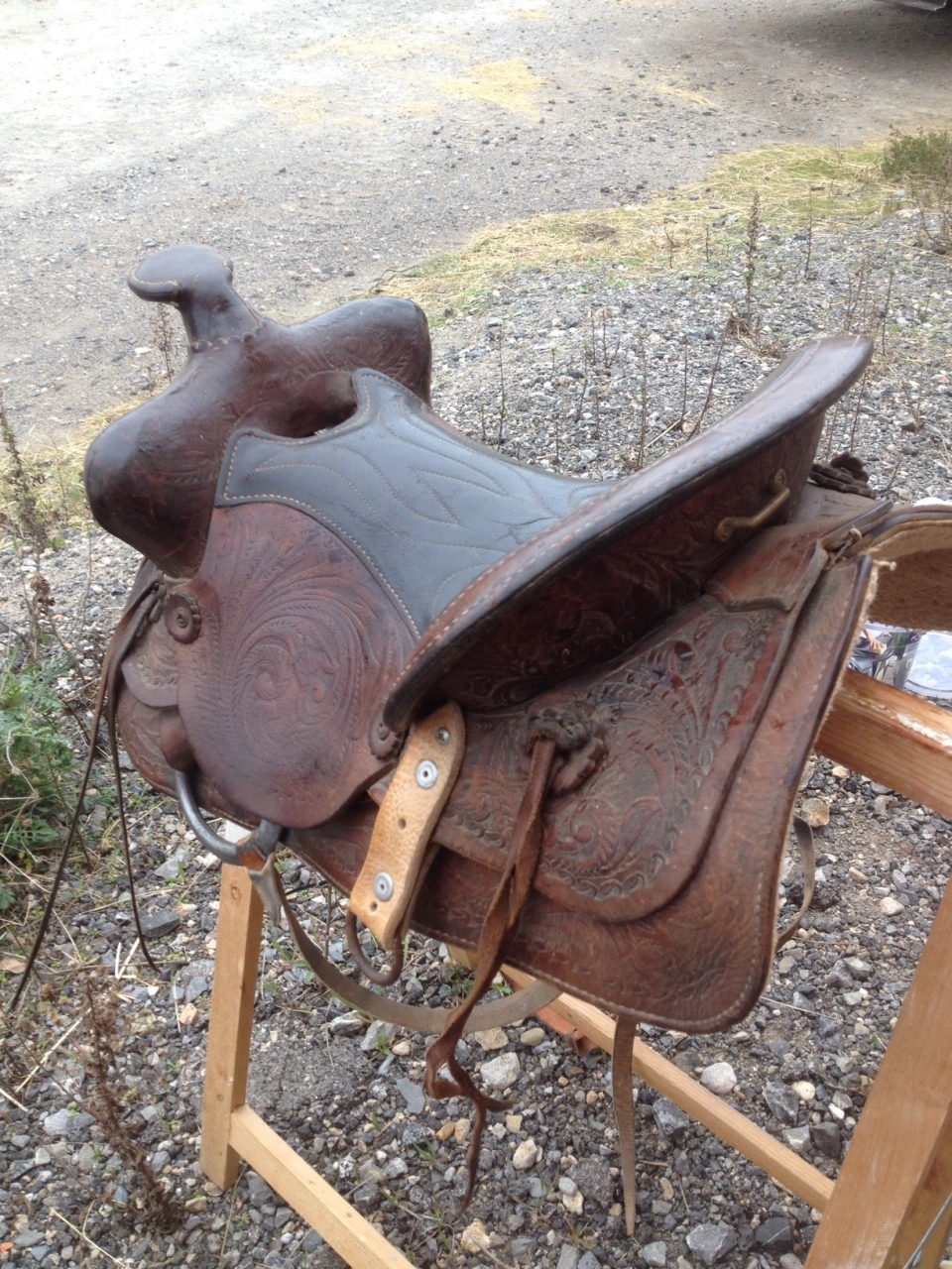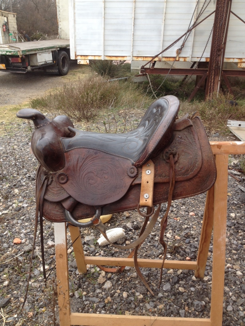 | Dire merci | Bonsoir à toutes et à tous ! Je viens de récupérer une selle dont j'ignore tout, à part que c'est une western bien évidemment Son ancien propriétaire étant décédé, je ne connais ni la marque, ni sa provenance, ni son âge. Elle n'a malheureusement plus d'étrivières. ![]() ![]() ![]() Je l'ai au moins mesurée, c'est une 14.5 pouces (ouuuuiiiiinnnnn, avec mon mètre 75 et ma taille 40, je crois qu'elle m'est trop juste )Il n'y a rien d'inscrit sur la selle, rien qui pourrait me donner un indice pour trouver la référence. Est-ce que les plus connaisseurs d'entre vous pourraient deviner rien qu'à première vue ? Et pour aller plus loin, donner une estimation ? Je vous remercie d'avance ![]() |