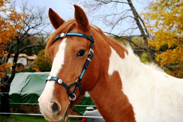 | Dire merci | Le side "de base" oui, du commerce, est avec muserolle en rope, ou double rope. Mais, bien sur qu'on en trouve des moins sévères ( et heureusement), en cuir rond, même en cuir plat, pour te dire même j'ai des demandes poudre en faire avec muserolle plate,large, Et matelassee même C est d ailleurs ce que j'ai pour ma juju pour qui même une muserolle plate "standard"est encore trop sévère ![]() |