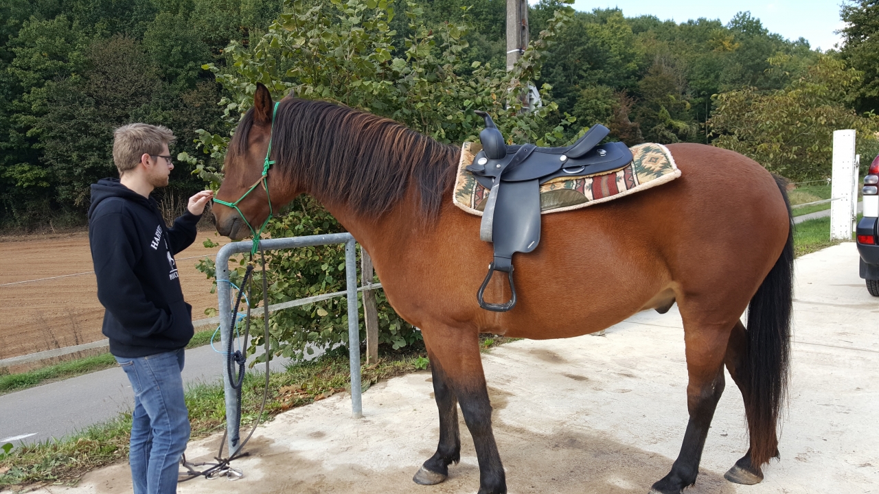 | Dire merci | Alors juste pour répondre, non, c'est le licol attaché trop lâche qui me choque. le tapis je le centrerai plus. la selle, ba si t'es pas difficil et que ce n'est que pour une fois la semaine....... je changerais rien. ah, si j'e sanglerai un peut, (lol) et roule ma poule! ![]() |